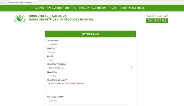 Để đặt được lịch khám qua Website bạn chỉ cần truy cập vào trang web của Bệnh viện Phụ sản Hà Nội. Sau đó kích vào mục đặt lịch khám ở góc bên tay phải màn hình. Cuối cùng là điền đầy đủ thông tin vào bảng và xác nhận đặt lịch hẹn.