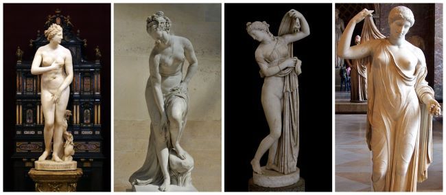 Từ trái qua: Venus de Medici, Venus Allegrain, Venus Kallipygos và Venus Frejus, các phiên bản của Venus tại Thác mặt trời.