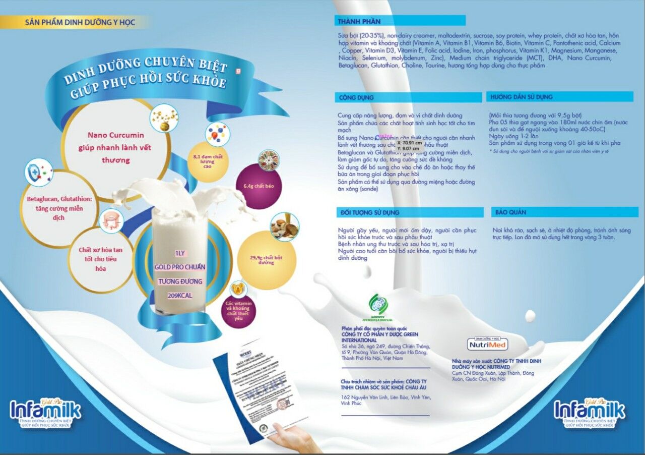 Infamilk là sản phẩm có nguyên liệu chính là nguồn sữa Newzeland nhập khẩu, đóng gói tại Việt Nam dựa trên công thức của các chuyên gia dinh dưỡng hàng đầu, có công thức dinh dưỡng chuyên biệt rất thích hợp cho người lớn, người cần phục hồi sức khỏe trước và sau phẫu thuật, người bị thiếu hụt dinh dưỡng và giúp giảm mệt mỏi, ăn ngủ ngon, đồng thời giúp giảm cholesterol, tốt cho hệ tim mạch và tạo hệ xương chắc khỏe.