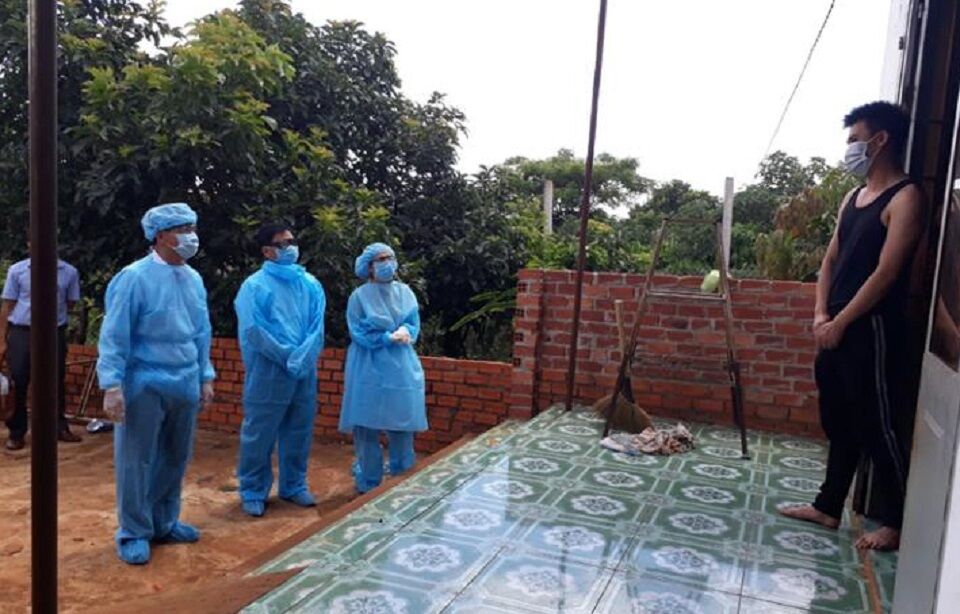 Lãnh đạo huyện Krông Năng thăm hỏi hộ gia đình cách ly y tế tại nhà trên địa bàn xã Ea Tân.
