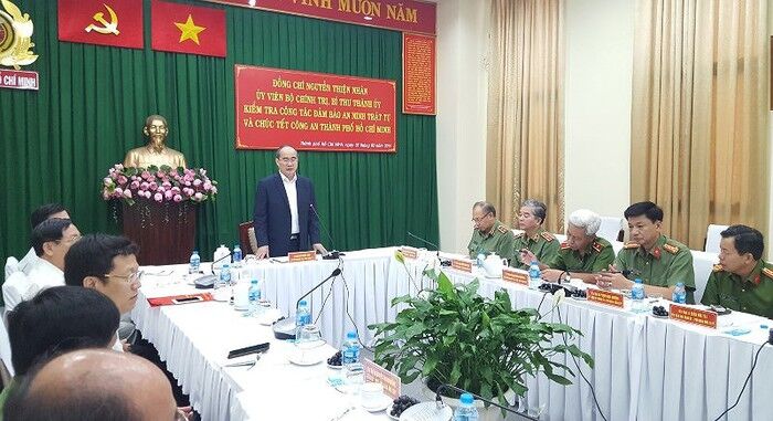 VNHN - Nhân dịp Tết Nguyên đán Kỷ Hợi 2019 và kỷ niệm 89 năm Ngày thành lập Đảng (3/2/1930 – 3/2/2019), sáng qua (3/2), đồng chí Nguyễn Thiện Nhân, Ủy viên Bộ Chính trị, Bí thư Thành ủy TP Hồ Chí Minh cùng đoàn đoàn đại biểu thành phố đã đến thăm, chúc Tết cán bộ, chiến sĩ Công an thành phố và Bộ Tư lệnh TP Hồ Chí Minh.