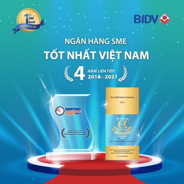 Giải thưởng được 2 tạp chí quốc tế uy tín là Asian Banking and Finance và Alpha Southeast Asia trao tặng do Ngân hàng TMCP Đầu tư và Phát triển Việt Nam (BIDV) dẫn đầu về quy mô khách hàng và tiên phong trong cung cấp các giải pháp chuyển đổi số cho doanh nghiệp SME.