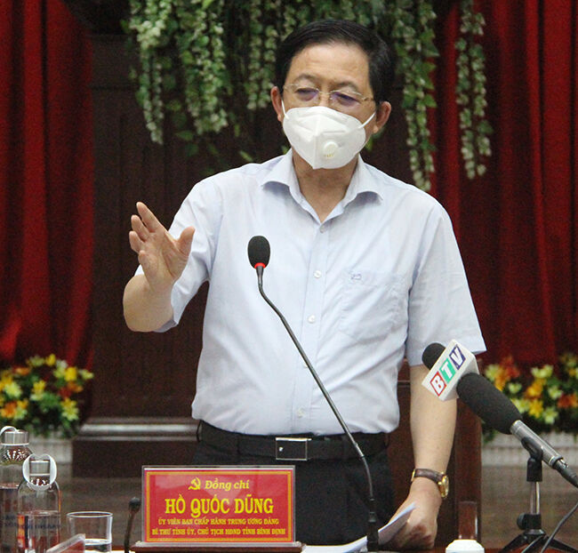 Nhận định tình hình dịch ở TP Quy Nhơn rất phức tạp, nhất là phường Hải Cảng, Bí thư Tỉnh ủy Hồ Quốc Dũng nhấn mạnh phải thật sự quyết tâm mới kiềm chế được dịch bệnh. “Phải phân công nhiệm rõ ràng; cả hệ thống chính trị vào cuộc, không được khoán trắng cho ngành Y tế. Làm không xong, các đồng chí phải chịu trách nhiệm trước Đảng, trước nhân dân tỉnh nhà, chứ không phải riêng thành phố đâu”, Bí thư Tỉnh ủy nêu rõ.