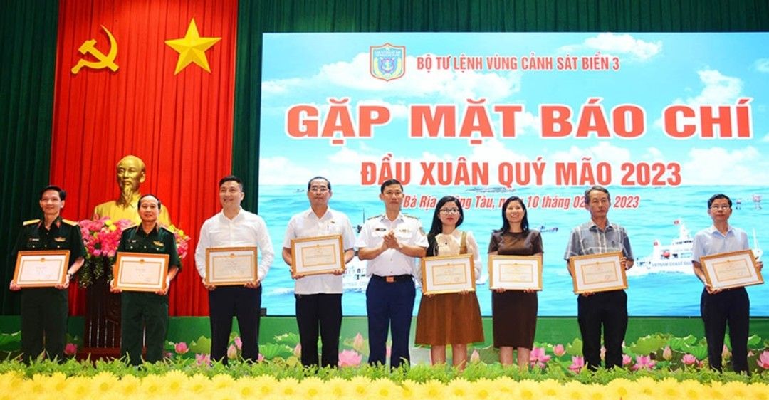 Dịp này, Bộ tư lệnh Cảnh sát biển và Bộ tư lệnh Vùng Cảnh sát biển 3 khen thưởng các tập thể, cá nhân tiêu biểu; trong đó, Tạp chí Việt Nam Hội nhập được Bộ tư lệnh Cảnh sát biển tặng Bằng khen./.