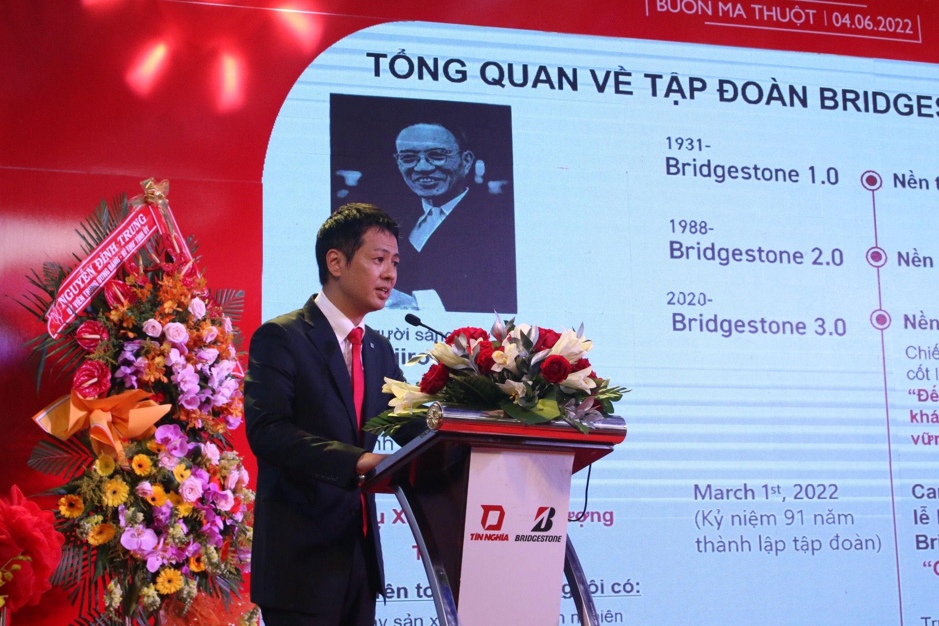 Phát biểu tại buổi lễ ông Naoki Inutsuka, Tổng Giám Đốc Bridgestone Việt Nam cho biết; Đây là Premium B-Select thứ 4 của Bridgestone tại Việt Nam, cũng là Premium B-Select đầu tiên của Bridgestone tại khu vực Tây Nguyên. Tại Việt Nam, Bridgestone sẽ tiếp tục mở rộng hệ thống kênh phân phối chiến lược, để thực hiện cam kết “Mở rộng: Cam kết chuyển động và cải tiến không ngừng, để con người và thế giới luôn tiến lên phía trước”.
