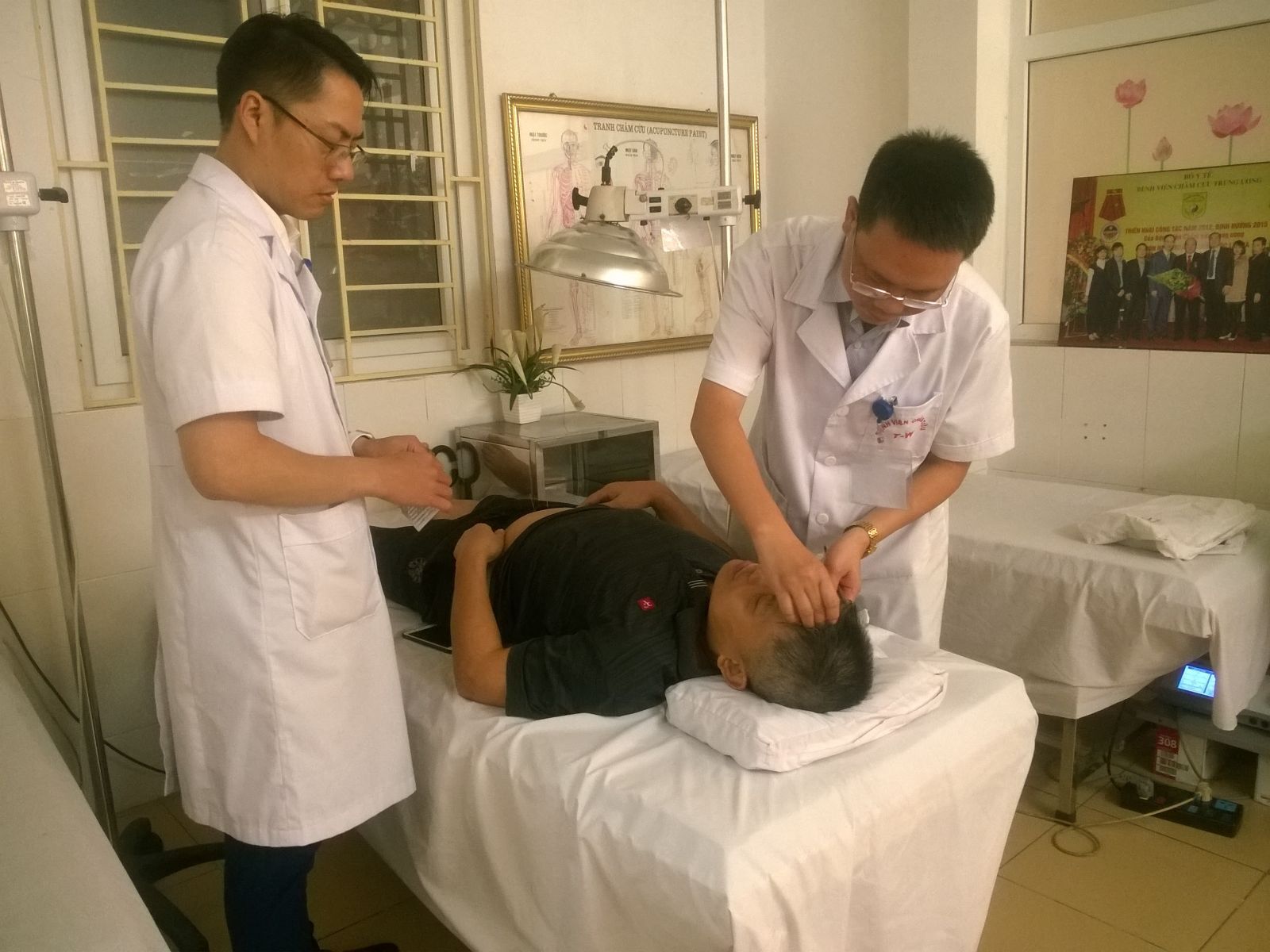 BSCKI. Ngô Trọng Tục - Trưởng khoa Nam học - Cột sống tận tình giúp đỡ, châm cứu cho người bệnh.