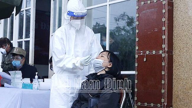 Lấy mẫu xét nghiệm COVID-19 cho người dân trên địa bàn (Ảnh: Báo Nam Định)