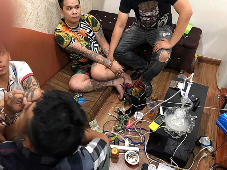 Các đối tượng bị bắt khi đang sử dụng ma túy tại căn hộ chung cư cao cấp