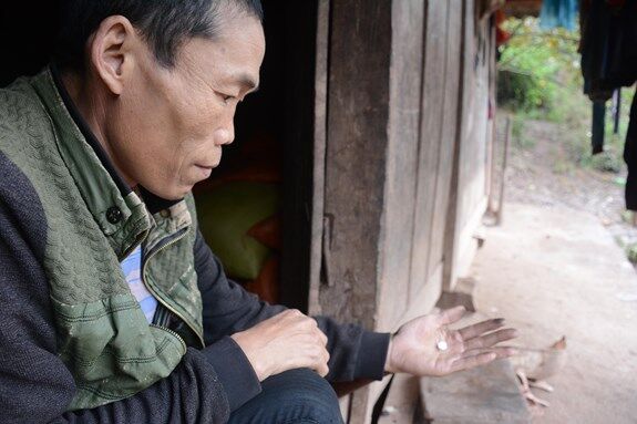 Anh Giàng A Ký ở bản Huổi Thủng 3, cầm viên thuốc APC, loại thuốc dùng để trộn với sái thuốc phiện