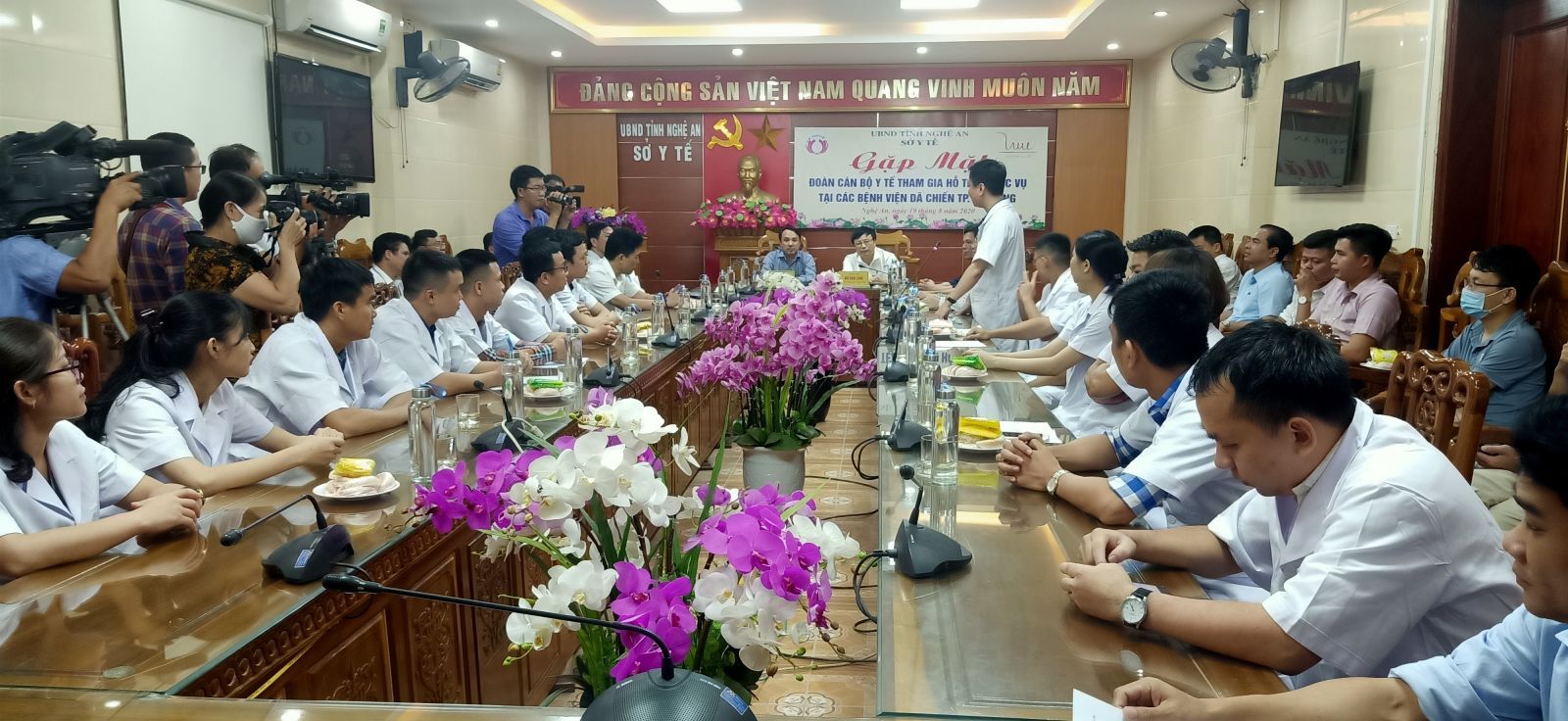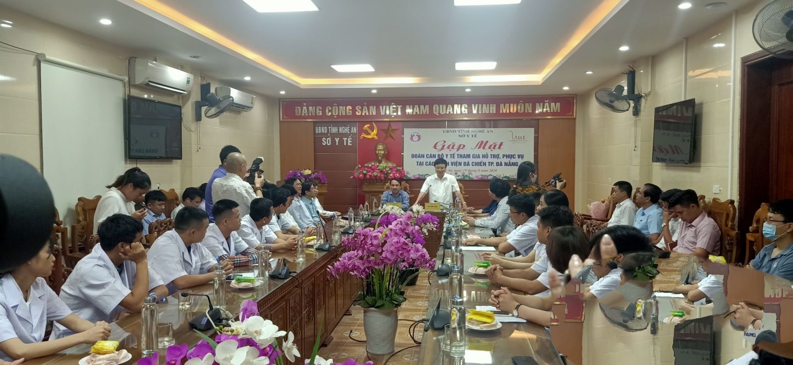 Cũng trong buổi chiều 19/8, UBND tỉnh Nghệ An, Sở Y tế Nghệ An tổ chức gặp mặt thành viên đoàn cán bộ y tế tham gia hỗ trợ, phục vụ tại các bệnh viện dã chiến TP. Đà Nẵng. Tham dự buổi lễ có đồng chí Bùi Đình Long - Phó Chủ tịch UBND tỉnh; lãnh đạo Sở Y tế và các đơn vị có cán bộ y tế tăng viện cho Đà Nẵng.