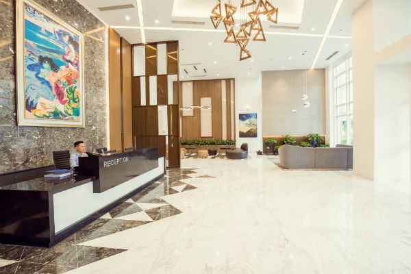 Sảnh lễ tân sang trọng, luôn ngập tràn ánh sáng.