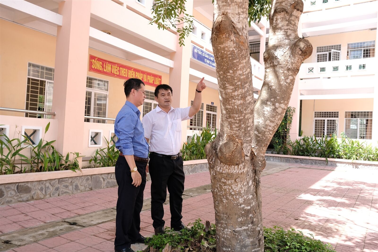 Đoàn công tác của Sở GD&ĐT TP Cần Thơ kiểm tra cây xanh trong khuôn viên trường học. (Nguồn: Internet)