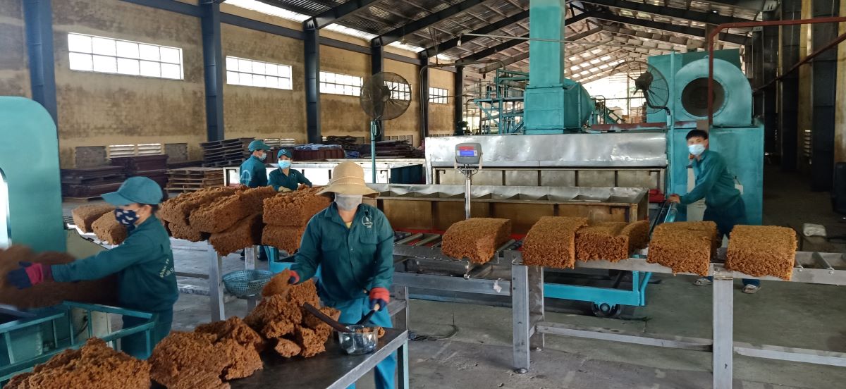 Dây chuyền sản xuất mủ cốm tại nhà máy chế biến mủ của công ty, đang chuẩn bị được nâng cấp để SX mủ chất lượng cao