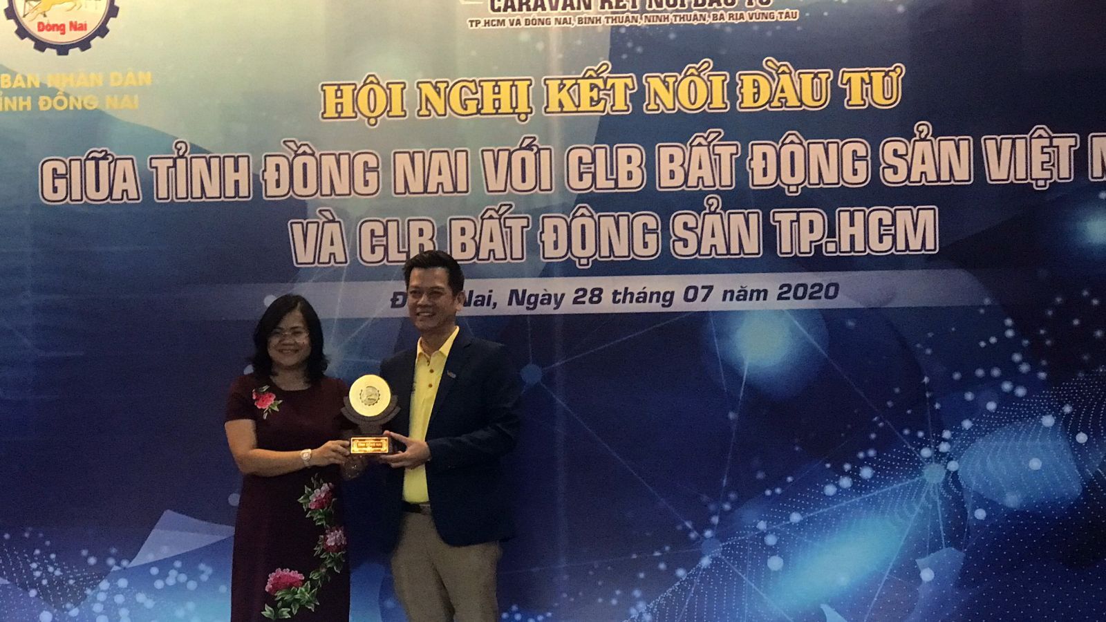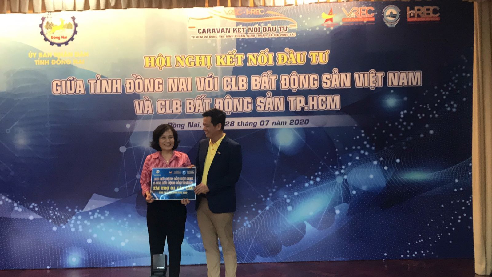 Trong ngày đầu tiên của "Hành trình Caravan", ông Nguyễn Quốc Bảo - Chủ tịch VREC và HREC đã trao Bảng tượng trưng tài trợ 01 cây cầu trị giá 01 tỷ đồng đến Bà Nguyễn Hòa Hiệp - Phó Chủ tịch UBND tỉnh Đồng Nai.