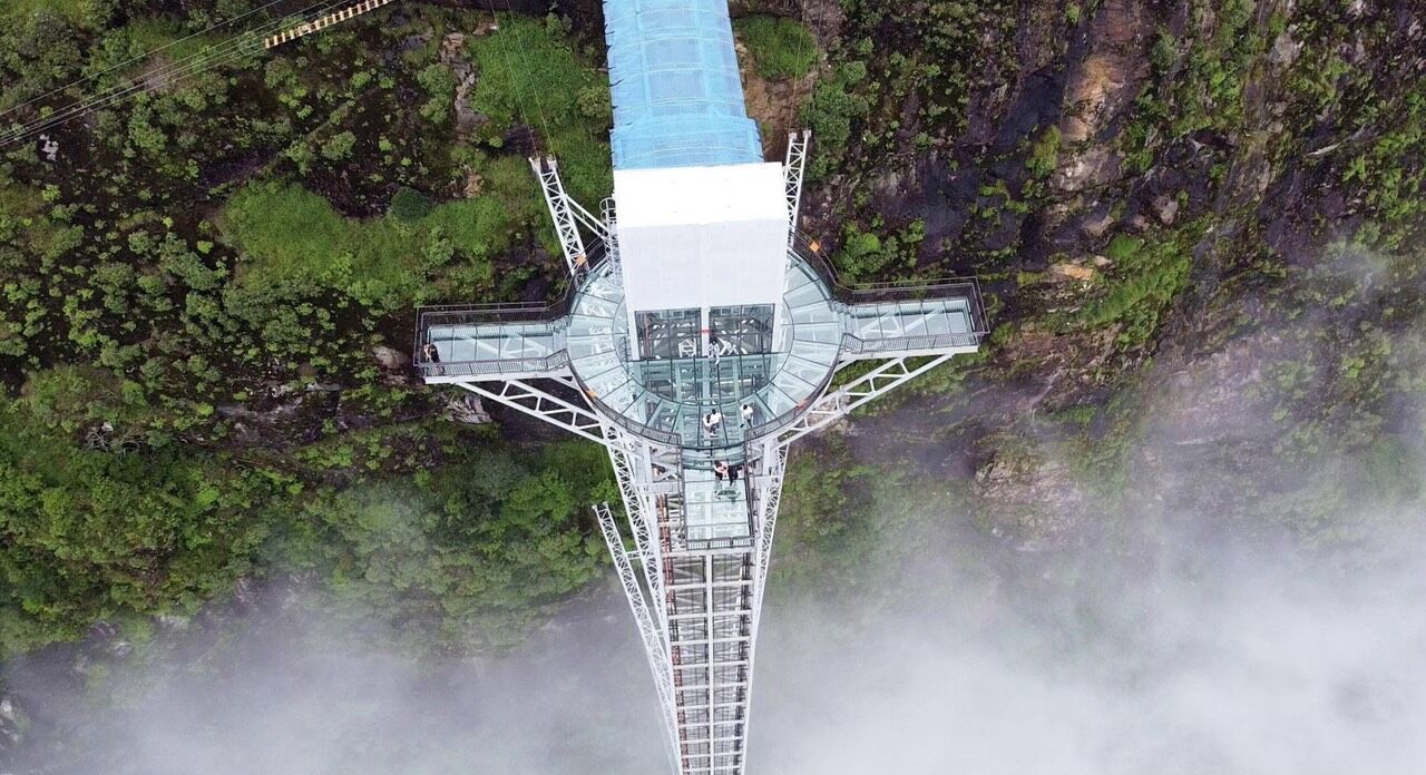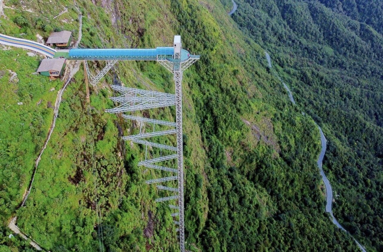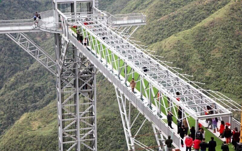 Công trình gồm cả hệ thống thang máy lồng kính và cầu kính được thiết kế, xây dựng theo tiêu chuẩn quốc tế đảm bảo an toàn cho du khách trong mọi điều kiện, nên du khách hoàn toàn yên tâm khi trải nghiệm cảm giác mạnh tại đây. Buồng thang máy có sức chứa 30 người với tốc độ di chuyển không quá nhanh đưa khách xuyên qua các tầng mây, thỏa sức chiêm ngắm vẻ đẹp hùng vĩ của núi rừng và cảnh quan…Theo ước tính, mỗi giờ thang máy có thể vận chuyển 1.200 khách du lịch.