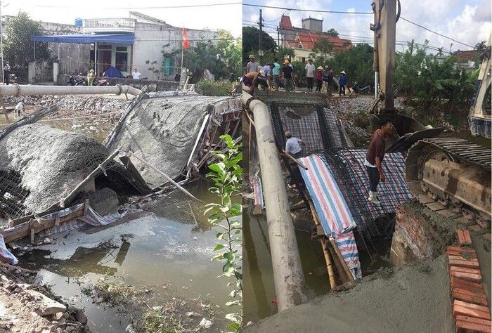 Tuy nhiên, do chưa hút hết nước dưới sông, cộng với công tác chống khi xây cầu dưới sông bị lún, dẫn đến sự việc vừa đổ bê tông cầu đã bị sập. Rất may, không có thương vong về người.