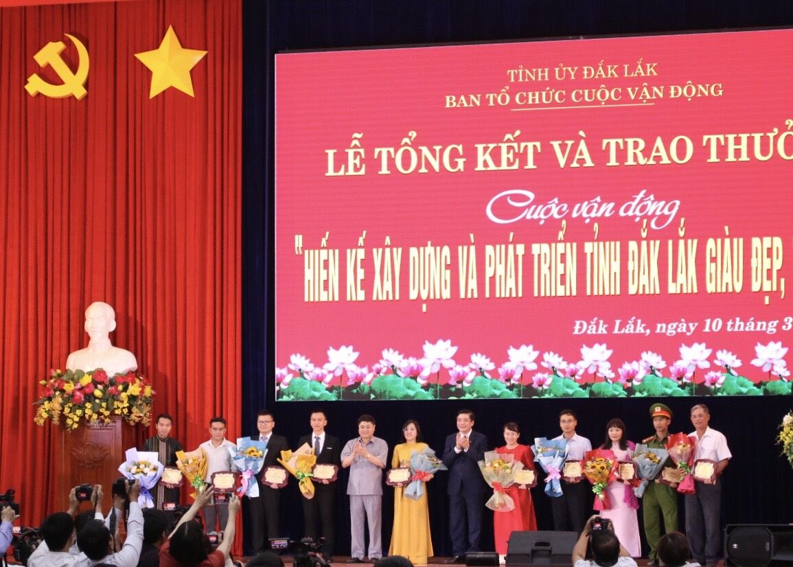 Chiều ngày 10/03 tại hội trường tỉnh ủy, ban tổ chức cuộc vận động: “Hiến kế xây dựng và phát triển tỉnh Đắk Lắk giàu đẹp” đã tổ chức lễ tổng kết và trao thưởng cho các tổ chức, cá nhân có những ý tưởng hay, thực tế.Tham dự buổi lễ có đồng chí Bùi Văn Cường, Ủy viên Ban Chấp hành Trung ương Đảng, Bí thư Tỉnh ủy Đắk Lắk; Đồng chí Phạm Ngọc Nghị Phó Bí thư Tỉnh ủy, Bí thư BCS Đảng UBND tỉnh, Chủ tịch UBND tỉnh, cùng lãnh đạo các sở ban ngành, các đơn vị, cá nhân tham gia hiến kế, các cơ quan thông tấn báo chí trung ương và địa phương.