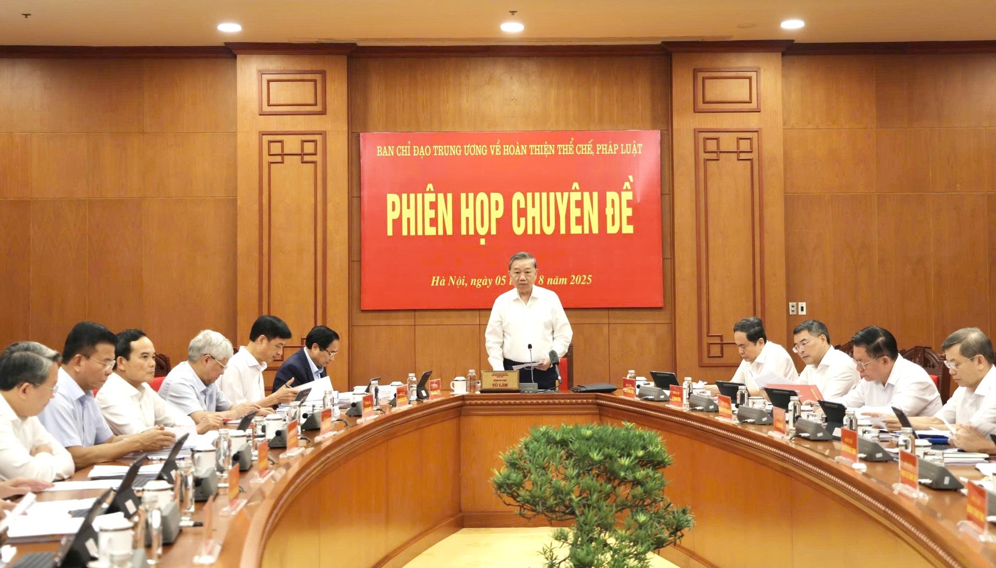 Ngày 05/8/2025, đồng chí Tổng Bí thư Tô Lâm, Trưởng Ban Chỉ đạo Trung ương về hoàn thiện thể chế, pháp luật chủ trì Phiên họp chuyên đề của Ban Chỉ đạo để xem xét, cho ý kiến về: