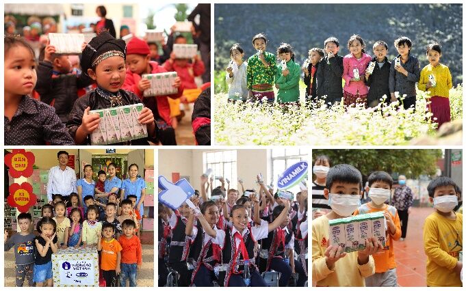 Niềm vui của các em nhỏ được thụ hưởng từ chương trình “Quỹ sữa Vươn cao Việt Nam” trong năm 2020