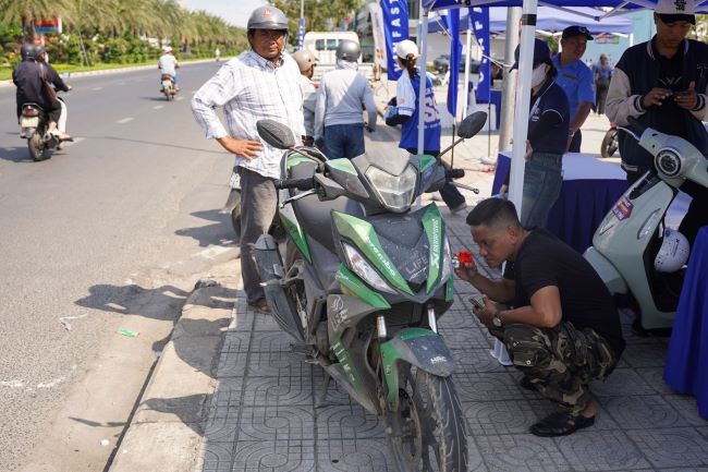 Không chỉ dừng ở khâu tìm hiểu, nhiều khách hàng còn mang xe xăng cũ tới sự kiện để thẩm định và chốt phương án đổi xe ngay trong ngày. Chị Minh Khuê (phường Phú Yên, tỉnh Đắk Lắk) mang chiếc Honda Lead đời 2010 đến sự kiện và nhanh chóng được thẩm định thu mua với giá 3 triệu đồng. Sau khi được báo giá, chị quyết định chốt luôn Evo Grand màu xanh oliu cho mẹ đi chợ, dạo phố.