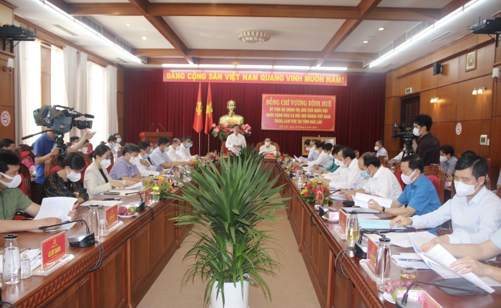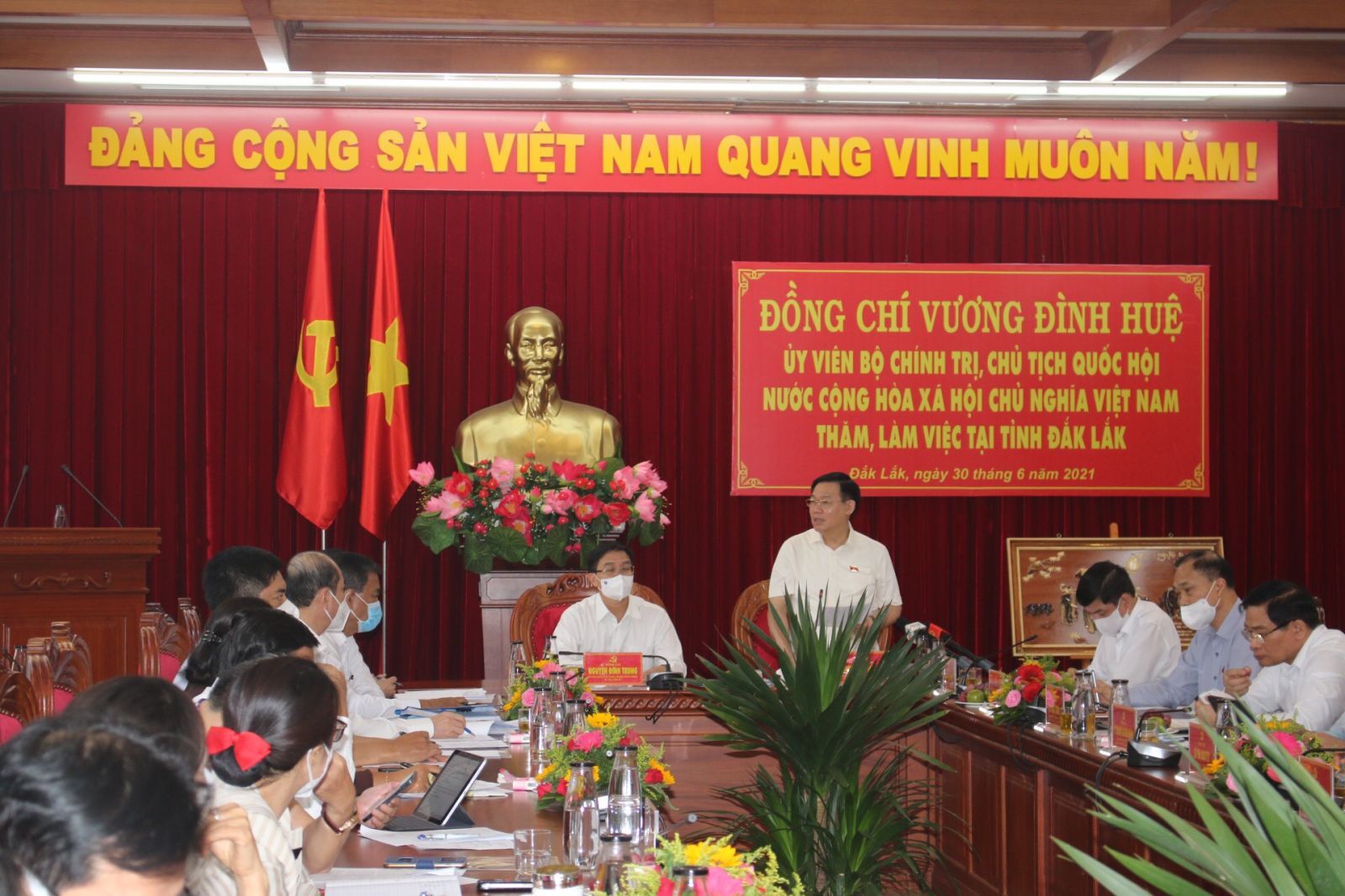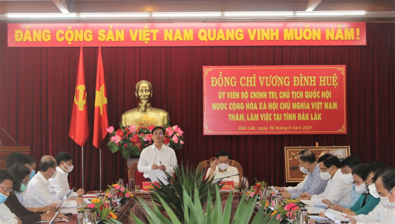 Đồng chí Vương Đình Huệ - Ủy viên Bộ Chính trị, Chủ tịch Quốc hội đã chỉ đạo các bộ ban ngành tham luận, đánh giá, ghi nhận những kiến nghị, đề xuất của tỉnh. Chủ tịch Quốc hội biểu dương, ghi nhận và đánh giá cao những kết quả trong công tác 06 tháng đầu năm của tỉnh, kiến nghị, đề xuất trong thời gian tới. Chủ tịch Quốc hội nhấn mạnh sẽ có ý kiến với Quốc hội, Chính phủ quan tâm giải quyết cho tỉnh một số nội dung theo đề xuất của tỉnh Đắk Lắk.