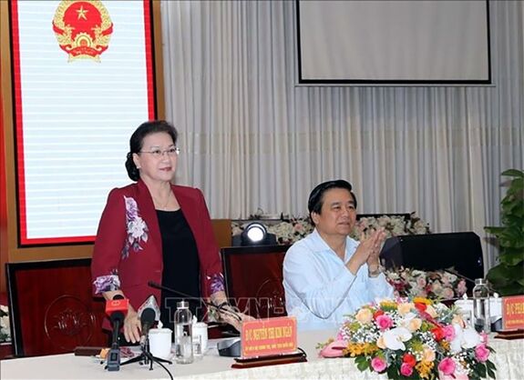 Phát biểu tại buổi làm việc, Chủ tịch Quốc hội Nguyễn Thị Kim Ngân khẳng định, nhiệm kỳ 2015-2020, tỉnh Long An đã đạt được nhiều kết quả rất đáng ghi nhận. Nổi bật là có 18/20 chỉ tiêu đề ra đạt và vượt, trong đó tốc độ tăng trưởng kinh tế bình quân khá cao, thu nhập bình quân đầu người năm 2020 ước đạt 79 triệu đồng. Cơ cấu kinh tế của tỉnh tiếp tục chuyển dịch rõ nét... Công tác xây dựng Đảng được quan tâm, thực hiện có hiệu quả. Việc tuyên truyền, quán triệt, tổ chức thực hiện các chỉ thị, nghị quyết của Đảng nghiêm túc, kịp thời. Hoạt động của chính quyền địa phương có sự đổi mới, nâng cao chất lượng, đáp ứng ngày càng tốt hơn yêu cầu nhiệm vụ... Cơ bản tán thành phương hướng, nhiệm vụ của tỉnh đề ra trong thời gian tới, Chủ tịch Quốc hội đề nghị, tỉnh Long An cần tiếp tục quán triệt, thực hiện tốt các nghị quyết của Đảng, chính sách, pháp luật của Nhà nước và Nghị quyết của Đảng bộ tỉnh; làm tốt công tác xây dựng Đảng, xây dựng hệ thống chính trị trong sạch, vững mạnh; tăng cường các công tác tư tưởng, dân vận, kiểm tra, giám sát, giữ nghiêm kỷ luật đảng; đẩy mạnh công tác đấu tranh phòng, chống tham nhũng. Theo Chủ tịch Quốc hội, Long An cần tổ chức thực hiện khẩn trương, đồng bộ, hiệu quả các cơ chế, chính sách phát triển kinh tế-xã hội, nhất là về chính sách thuế, chính sách an sinh xã hội mới được Quốc hội, Ủy ban Thường vụ Quốc hội, Chính phủ ban hành để hỗ trợ người dân, doanh nghiệp, người lao động, tháo gỡ các vướng mắc, thúc đẩy giải ngân vốn đầu tư công.