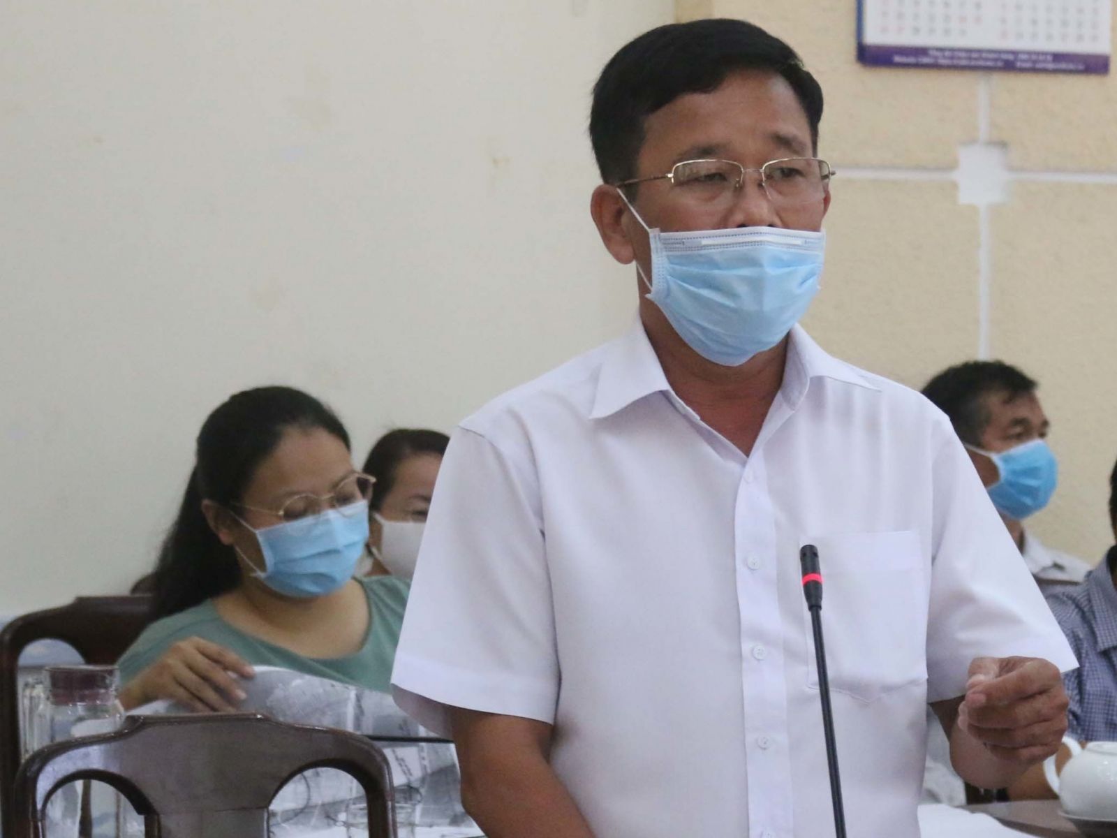 Ông Trần Quang Thảo – Chủ tịch UBND báo cáo công tác phòng, chóng dịch Covid – 19 với Ban chỉ đạo.