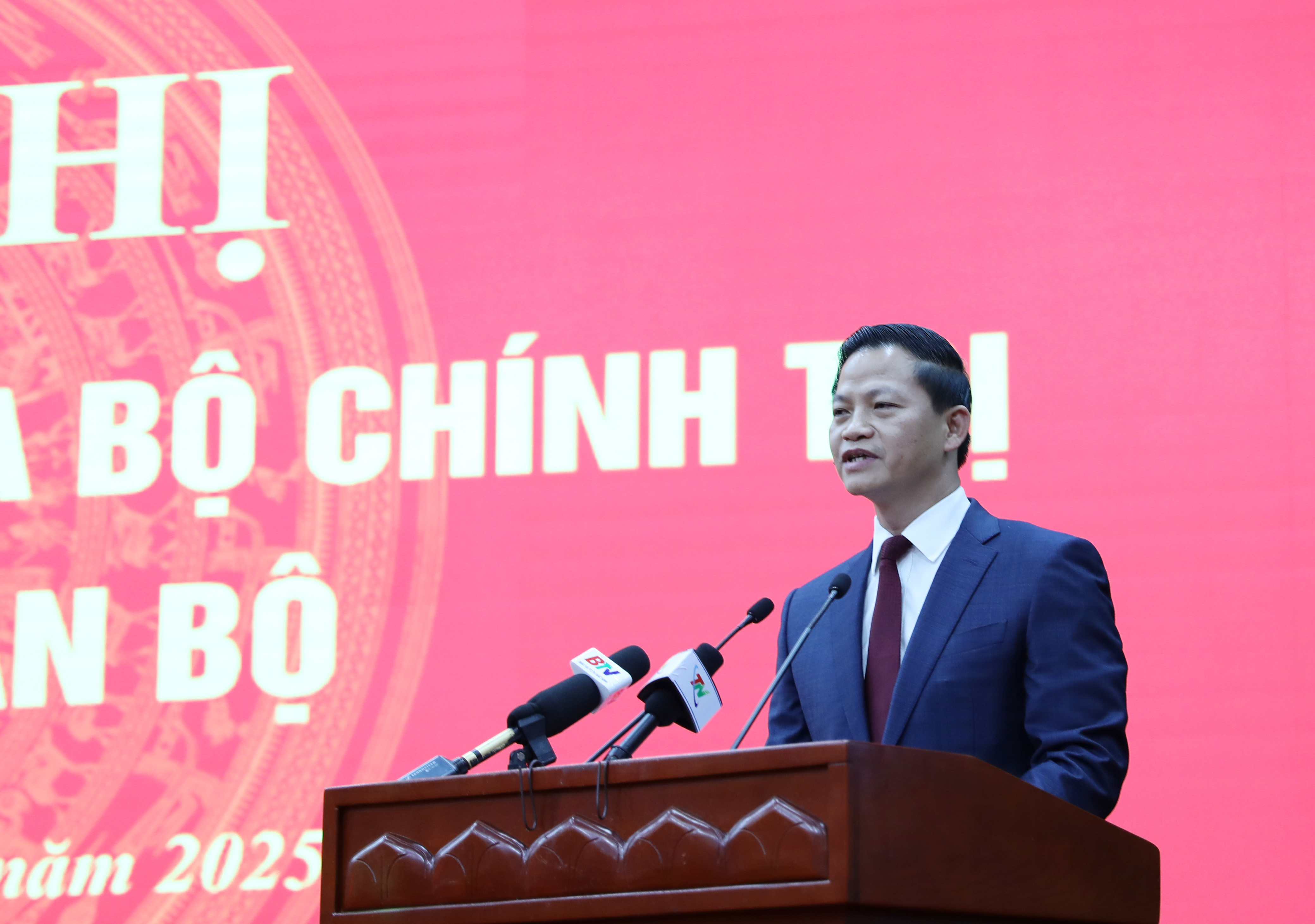 Đồng chí Nguyễn Quang Dương, Ủy viên BCH Trung ương Đảng, Phó Trưởng Ban Tổ chức Trung ương phát biểu tại Hội nghị.