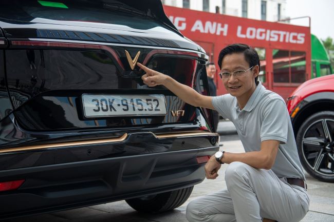 Ông Nguyễn Văn Huynh (61 tuổi, chủ một doanh nghiệp vận tải ở Hà Nội) có lẽ là khách hàng mua VinFast VF 7 Hoả Long Độc Bản hiếm hoi chọn thanh toán tiền mua xe vào “giờ rồng”, nộp lệ phí trước bạ cũng đúng “giờ rồng”, “ngày rồng” và chọn nhận xe cũng chính xác phải vào “giờ rồng”.