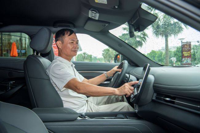 Là “sếp” nhưng ông Huynh thích cầm lái, ít khi chọn ngồi ở hàng ghế sau. Sau những trải nghiệm ban đầu với VF 7, ông rất ấn tượng với khả năng tăng tốc và độ phản hồi chính xác của chiếc xe. Vị chủ doanh nghiệp đánh giá,VF 7 cho trải nghiệm vận hành mạnh mẽ không thua kém một chiếc xe điện hạng sang có giá cao gấp khoảng 6 lần mà ông từng lái thử.