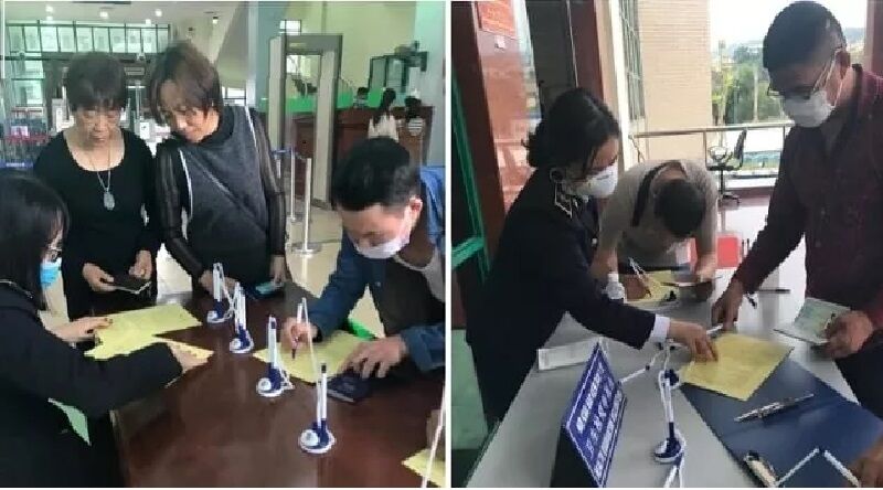 Hành khách khai báo y tế tại cửa khẩu Lào Cai.