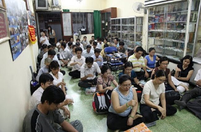 Nhiều thành phần, lứa tuổi khác nhau tại một buổi học cảm xạ về năng lượng tại Nam Định