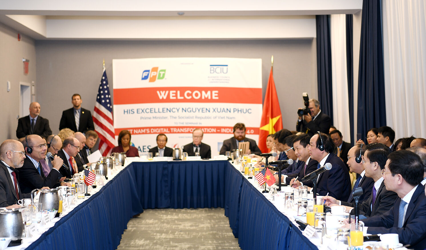Kêu gọi các “sếu lớn” Hoa Kỳ hãy đầu tư vào Việt Nam, Thủ tướng bày tỏ mong muốn các nhà đầu tư chia sẻ về phương thức và những gì Chính phủ Việt Nam có thể làm để Cách mạng công nghiệp 4.0 thực sự đem lại lợi ích và khả năng tạo ra bước phát triển đột phá cho Việt Nam hơn là bị đe dọa về mất việc làm và nguy cơ bị tụt lại phía sau… Thủ tướng khẳng định, Việt Nam luôn mở cửa đón chào và tạo điều kiện cho các nhà đầu tư thành công.