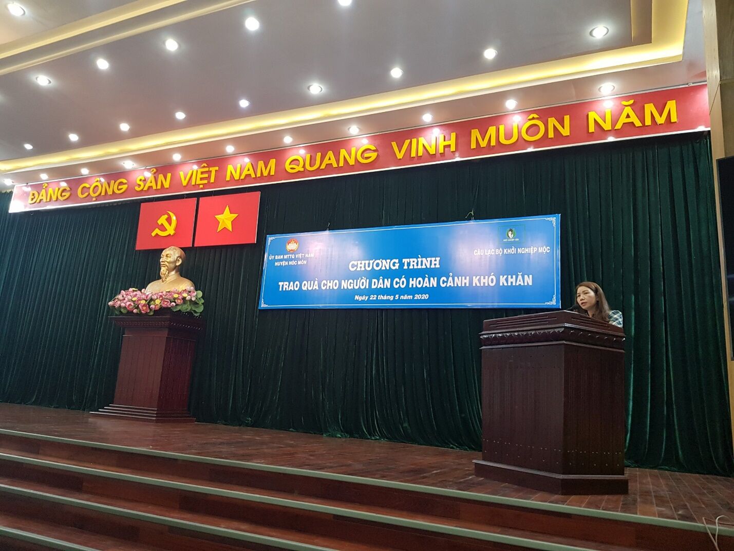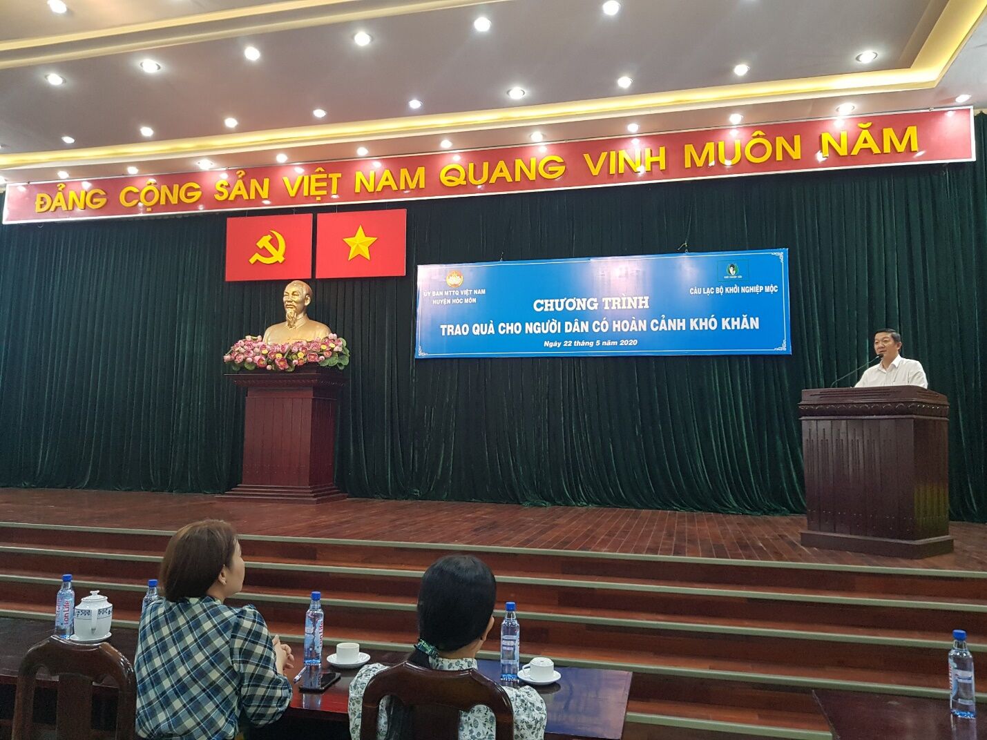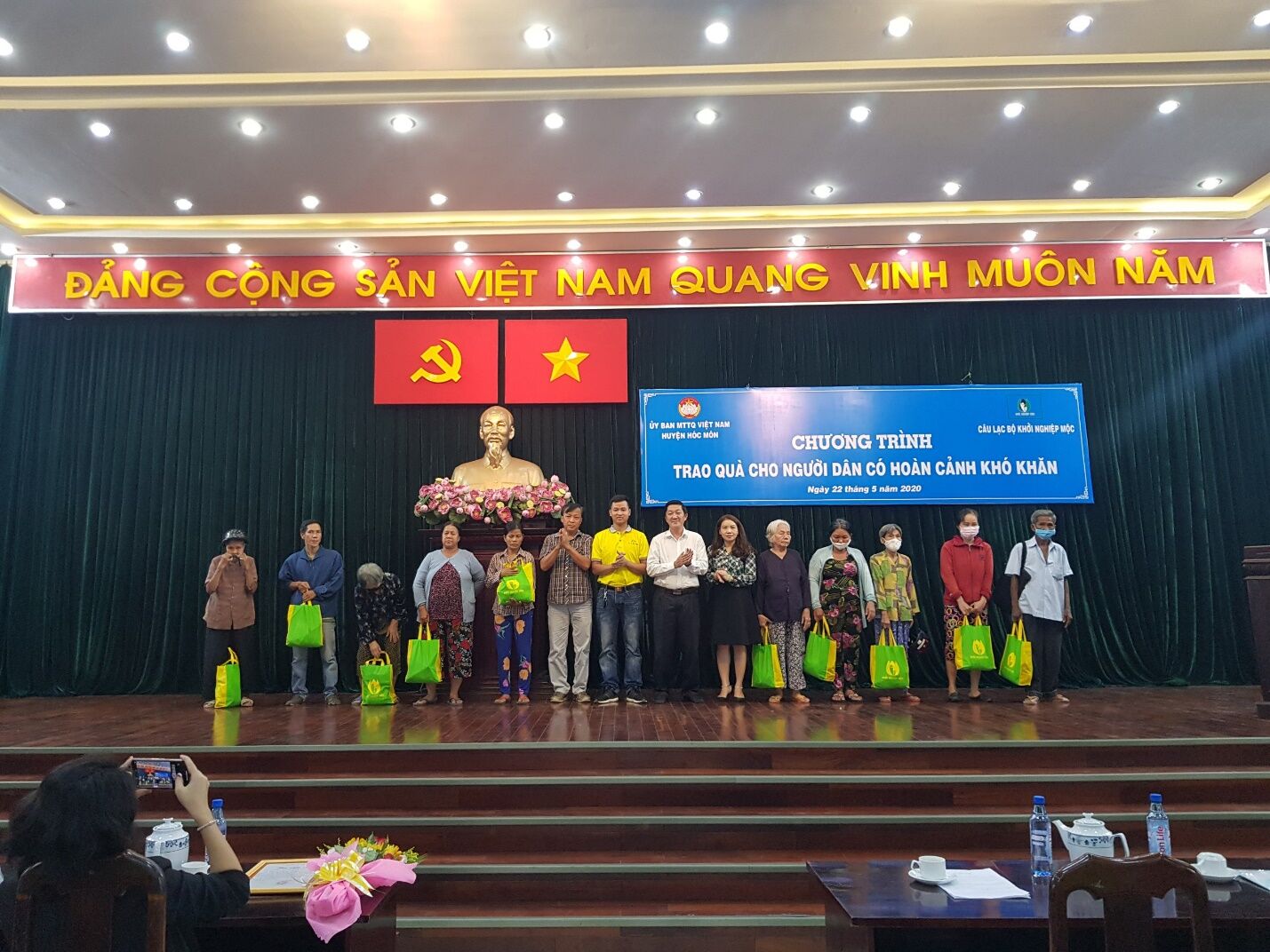 Ngày 22/5 vừa qua, CLB Khởi Nghiệp Mộc phối hợp với Mặt Trận Tổ Quốc Việt Nam huyện Hóc Môn tổ chức phát 150 phần quà cho bà con nghèo cư ngụ trên địa bàn huyện Hóc Môn, TP.HCM.