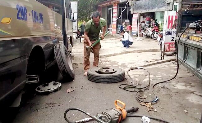 Lênh đênh trên xe chừng vài tiếng, khi vừa đi hết cao tốc Nội Bài - Lào Cai, chiếc xe chở đoàn đi bất ngờ bị xịt lốp và phải khắc phục tại ngã ba Xuân Giao, Bảo Thắng, Lào Cai. Tưởng chỉ thủng lốp đơn thuần, thế nhưng rốt cuộc tài xế phải thay toàn bộ săm xe vì nó đã nát bươm từ lúc nào. Cũng may mắn khi chúng tôi phát hiện và xử lý kịp thời, dù mất thêm gần một giờ đồng hồ để khắc phục sự cố trên nhưng cũng không làm các thành viên trong đoàn nản chí.