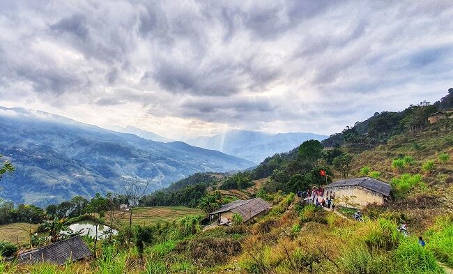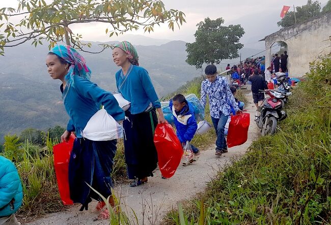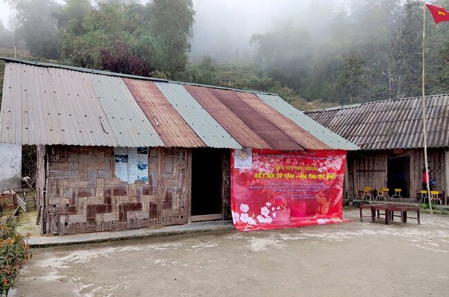 Do nằm trên điểm cao nên điểm trường quanh năm sương mù bao phủ, hiếm hoi lắm mới thấy được ánh nắng mặt trời. Dù đã là 11h trưa nhưng trời vẫn mù sương, lác đác lại có những hạt mưa khiến việc di chuyển của các thành viên trong đoàn hết sức khó khăn. Nhưng với sự giúp đỡ nhiệt tình của những người dân bản, chúng tôi đã lên đến điểm trường cùng với những món quà được sắp xếp cẩn thận, gọn gàng.
