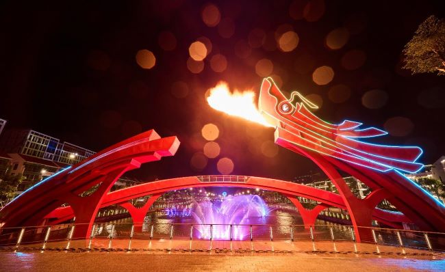 Những cột nước cao tới 80m, ánh sáng nhiều màu và hiệu ứng rồng phun lửa đã tạo nên một “bữa tiệc thị giác” ấn tượng, mang đến trải nghiệm giải trí khó quên ngay bên thềm nhà.