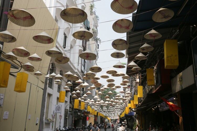 Hàng nghìn chiếc nón lá được treo khắp dọc con phố