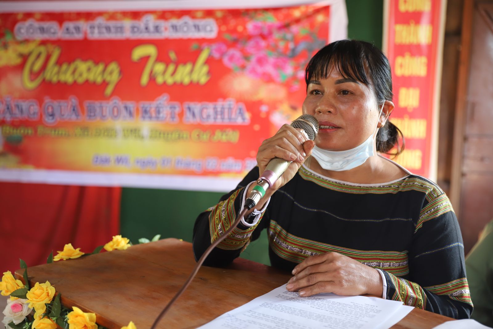 Tại nhà văn hóa Buôn Trum, thay mặt Đảng ủy, lãnh đạo Công an tỉnh Đắk Nông, Thượng tá Nay Gia Phú - Phó Giám đốc Công an tỉnh đã ghi nhận, biểu dương, cảm ơn sự đóng góp, ủng hộ, giúp đỡ to lớn của các già làng, người có uy tín và toàn thể nhân dân trên địa bàn trong công cuộc xây dựng và bảo vệ Tổ quốc trên địa bàn tỉnh nói chung, ở xã Đắk Wil, huyện Cư Jút nói riêng, đặc biệt là trong phong trào toàn dân bảo vệ an ninh Tổ quốc (ANTQ), xây dựng đời sống văn hóa ở khu dân cư. Đồng thời mong muốn, đồng bào Buôn Trum và Buôn Knha, xã Đắk Wil, nhất là các già làng, người có uy tín tiếp tục phát huy vai trò tiên phong, gương mẫu trong việc tuyên truyền, vận động nhân dân xây dựng khối đại đoàn kết dân tộc; thực hiện nghiêm các chủ trương, đường lối của Đảng, chính sách, pháp luật của Nhà nước, tích cực tham gia phong trào toàn dân bảo vệ ANTQ; phòng, chống dịch bệnh Covid-19, góp phần bảo đảm an ninh, trật tự (ANTT) ở cơ sở.