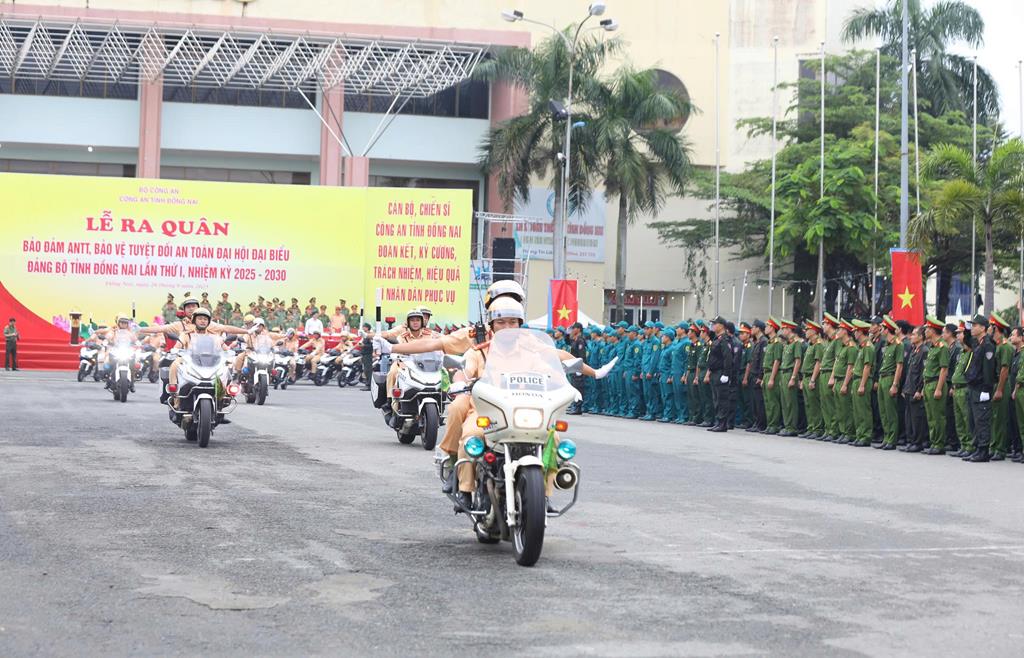 Lực lượng CSGT diễu hành trong Lễ ra quân bảo đảm an ninh trật tự, bảo vệ tuyệt đối an toàn Đại hội Đại biểu Đảng bộ tỉnh Đồng Nai lần thứ I, nhiệm kỳ 2025 – 2030 - Ảnh: TL