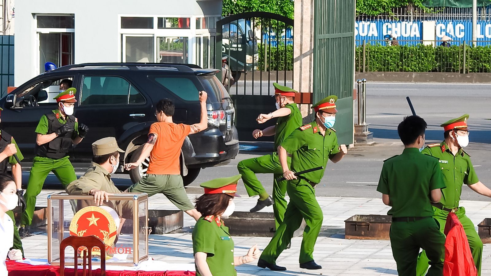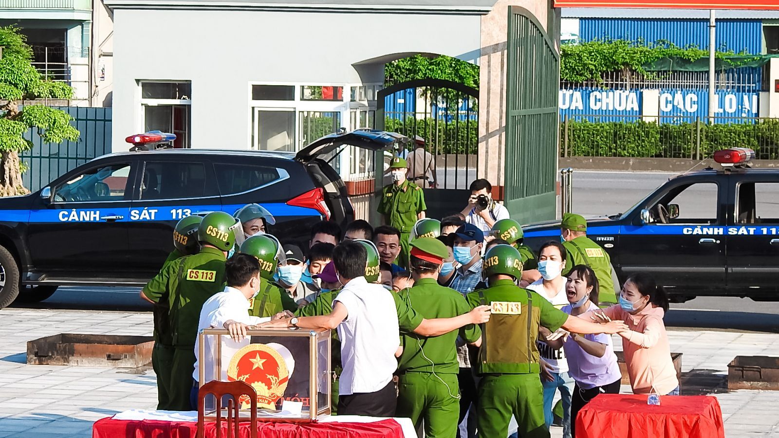 Lực lượng cảnh sát khống chế, bắt giữ các đối tượng, ổn định tình hình khu vực bầu cử