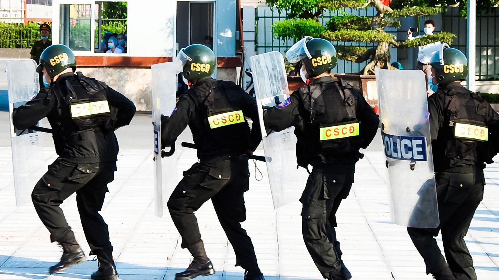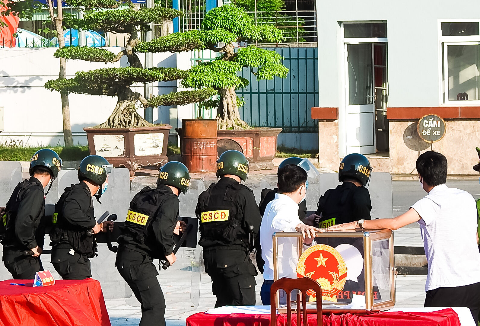 Màn diễn tập xử lý tình huống tập trung đông người khiếu kiện, gây rối an ninh, trật tự tại khu vực bỏ phiếu
