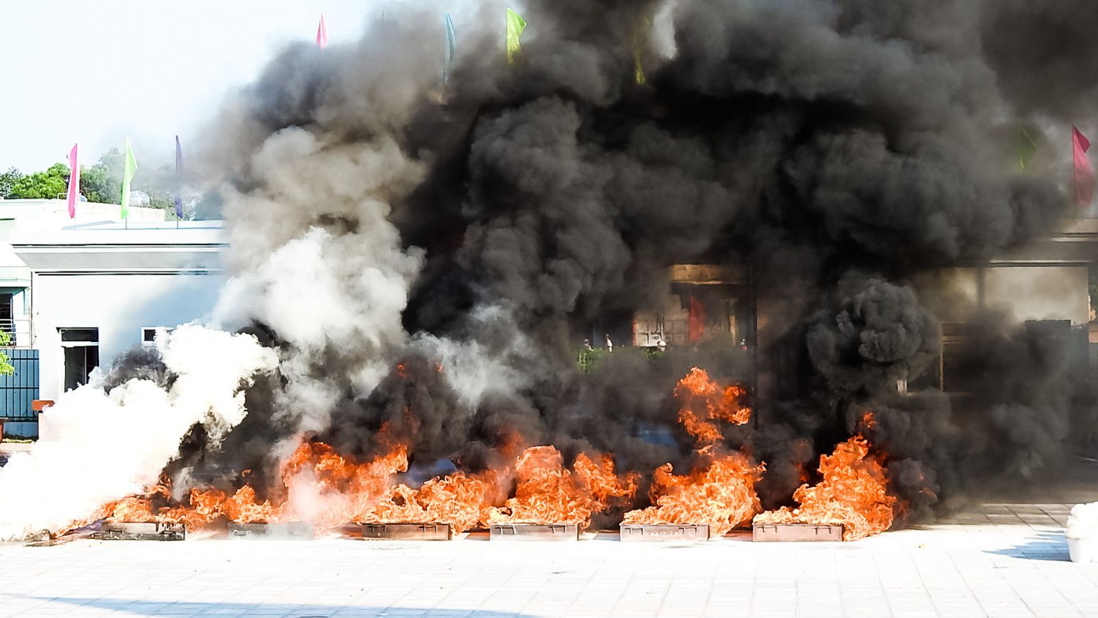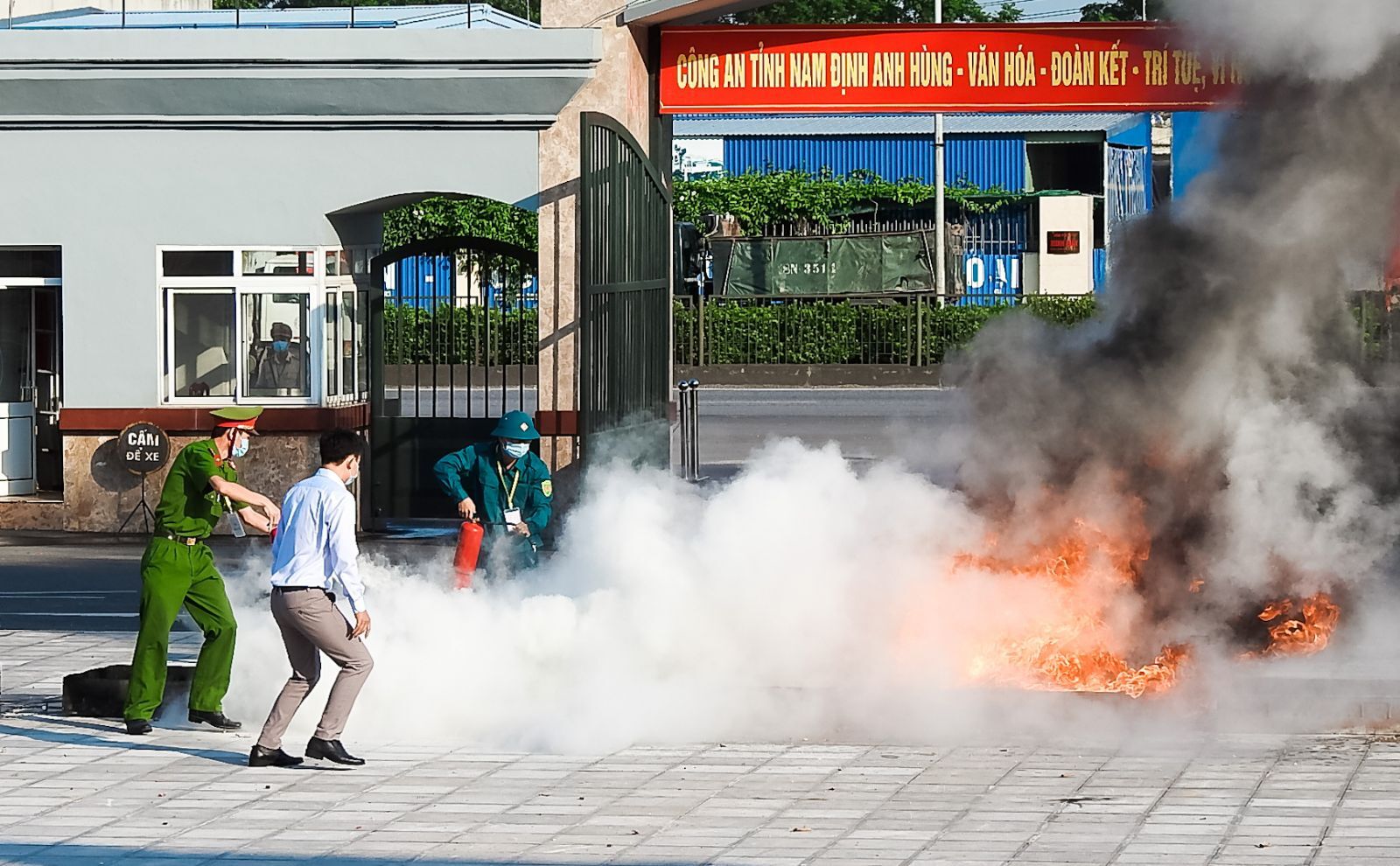Tiếp đến là màn diễn tập xử lý tình huống cháy nổ do lực lượng Cảnh sát PCCC&CNCH Công an tỉnh thực hiện