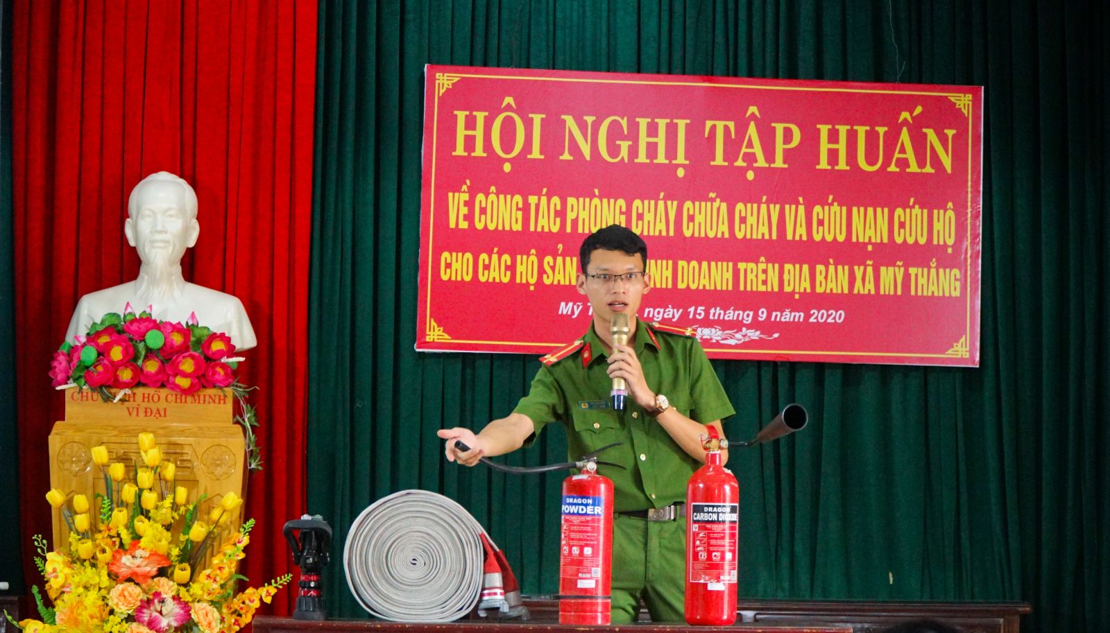 Chia sẻ sau buổi tập huấn, ông Trần Quốc Huy, Chủ tịch UBND xã Mỹ Thắng cho biết: “Xã Mỹ Thắng là vùng tập trung nhiều hộ sản xuất, kinh doanh trên địa bàn. Chính vì vậy, buổi tập huấn hôm nay có ý nghĩa thiết thực, góp phần phục vụ hiệu quả công tác an toàn PCCC, nâng cao nhận thức, ý thức trách nhiệm của mỗi người dân trong công tác bảo đảm an toàn phòng chống cháy nổ”.