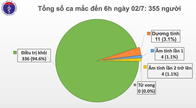 Tiểu ban Điều trị Ban chỉ đạo Quốc gia phòng, chống dịch Covid-19, hiện tại, Việt Nam đã công bố khỏi bệnh đối với 336 trường hợp nhiễm bệnh, chỉ còn 19 bệnh nhân đang điều trị.