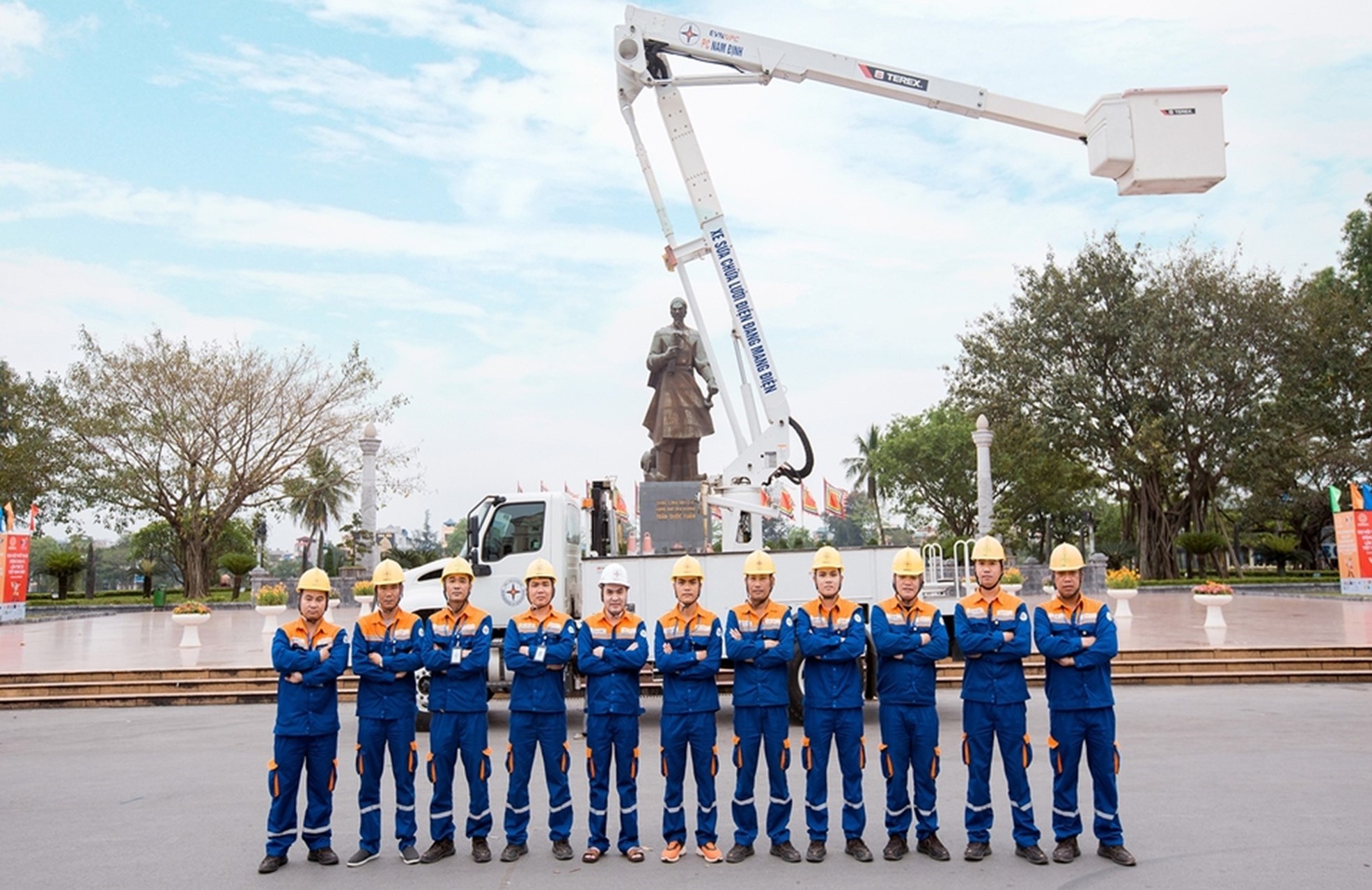 Lực lượng CN tinh nhuệ đội sửa chữa Hotline Công ty Điện lực nam Định và xe chuyên dụng
