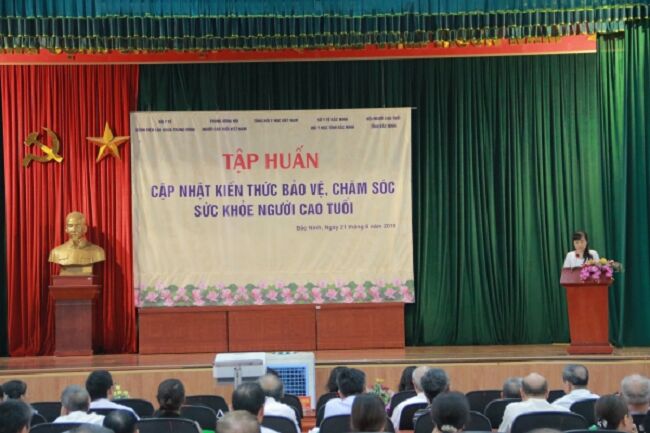 Do đó, tổng hội Y học Việt Nam đã phối hợp với Hội người cao tuổi tỉnh Bắc Ninh tổ chức lớp tập huấn này, với sự giam gia trình bày của GS.TS Phạm Thị Minh Đức, nguyên Phó hiệu trưởng trường Đại học Y Hà nội, nguyên Phó Chủ tịch Tổng hội Y học Việt Nam; PGS.TS Phạm Trung Anh – Giám đốc bệnh viện Lão khoa Trung ương; TS.BS Trương Hồng Sơn – Phó Tổng thư kí Tổng hội Y học Việt Nam, Viện trưởng Viện Y học ứng dụng Việt Nam.