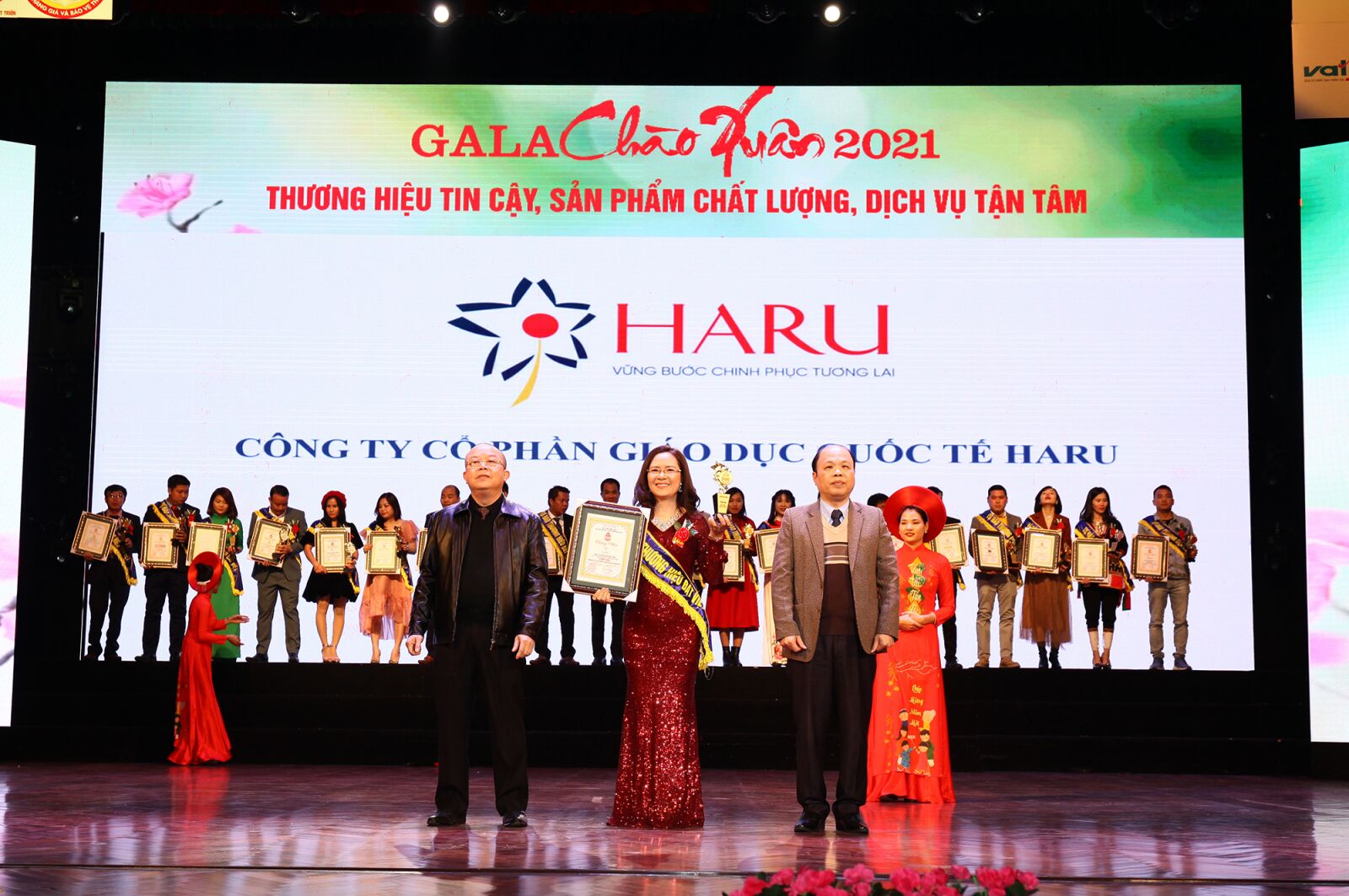 Với những giá trị tương lai trao đến cho hàng ngàn học viên những năm qua, trong khuôn khổ chương trình “Gala chào xuân 2021 - Tự hào thương hiệu đất Việt” diễn ra tại Hà Nội vừa qua, Công ty CP Quốc tế Haru đã vinh dự được bình chọn là Top 50 “Thương hiệu tin cậy - Sản phẩm chất lượng - Dịch vụ tận tâm” năm 2020.