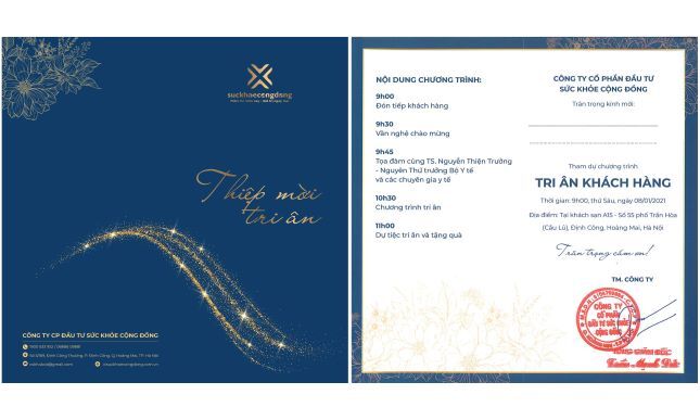 Ngày 08/01/2021 tới đây, Công ty CP Đầu tư Sức khỏe cộng đồng sẽ tổ chức Chương trình tri ân khách hàng - Tọa đàm cùng TS.Nguyễn Thiện Trưởng, nguyên Thứ trưởng Bộ Y tế, Phó Chủ tịch thường trực TW Hội Giáo dục chăm sóc sức khỏe cộng đồng Việt Nam và các chuyên gia có tiếng trong lĩnh vực y tế.