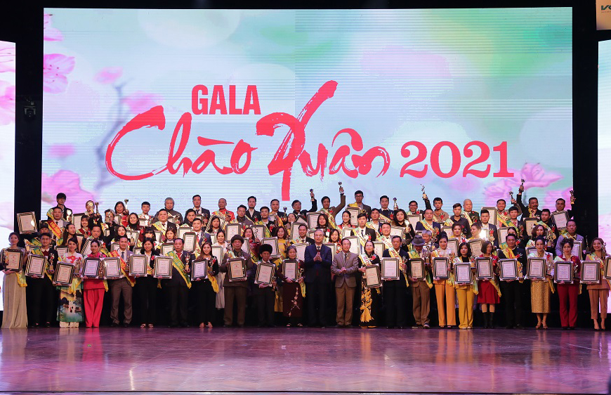 Lãnh đạo và cán bộ, nhân viên Công ty CP Nghe nhìn Đông Nam bên lề chương trình “Gala chào Xuân 2022 - Chắp cánh thương hiệu Việt” được tổ chức vào tháng 1/2022 vừa qua